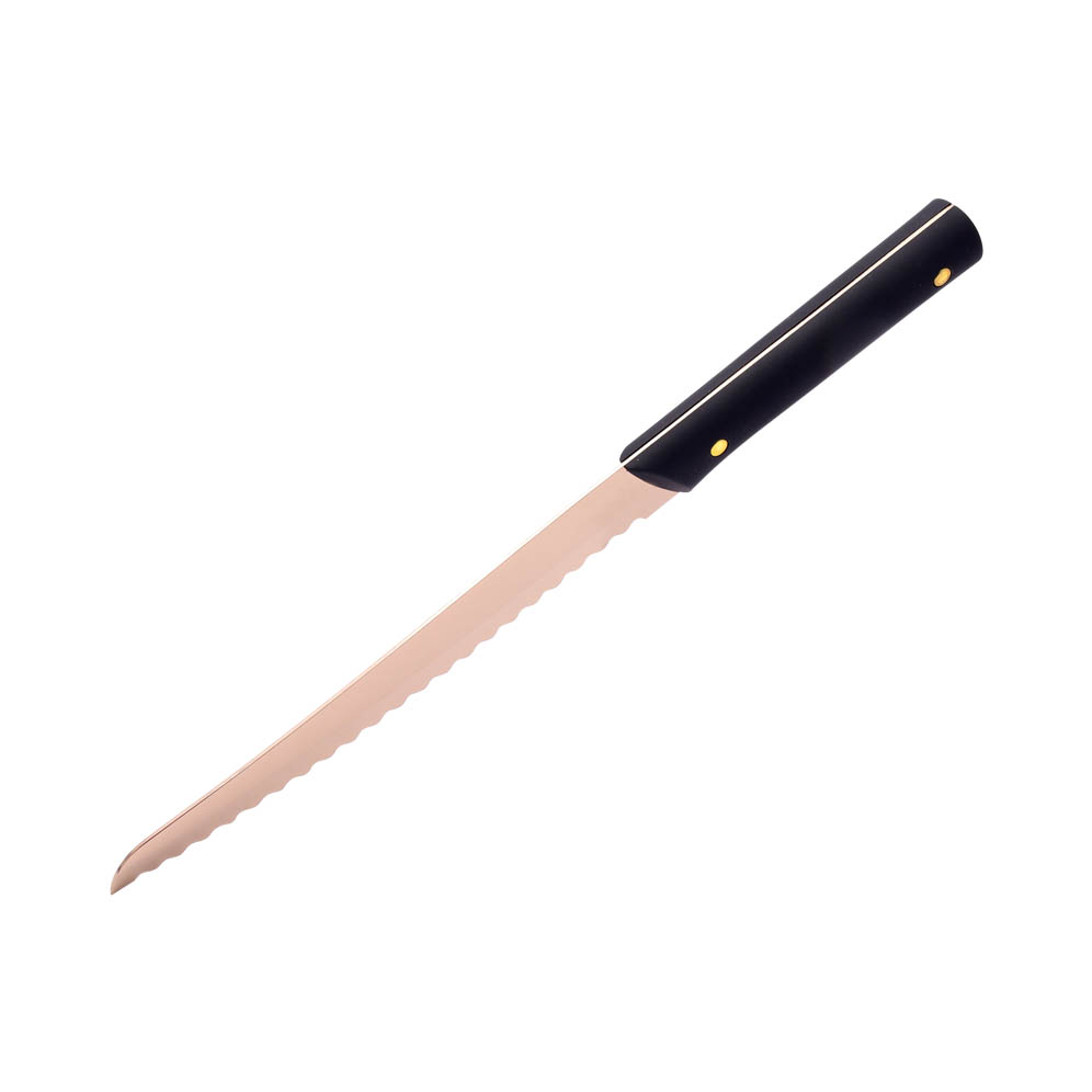 DESC:8" ABS+TPR HANDLE GOLD TI-COATED BREAD KNIFE
